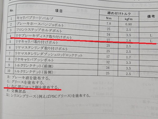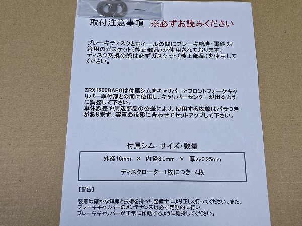 ブレーキ鳴き、電蝕対策に、ちゃんとガスケット使用しろよの注意と、