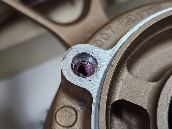 ネジ穴に古い緩み止め防止剤が残っているので、