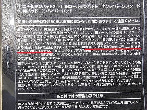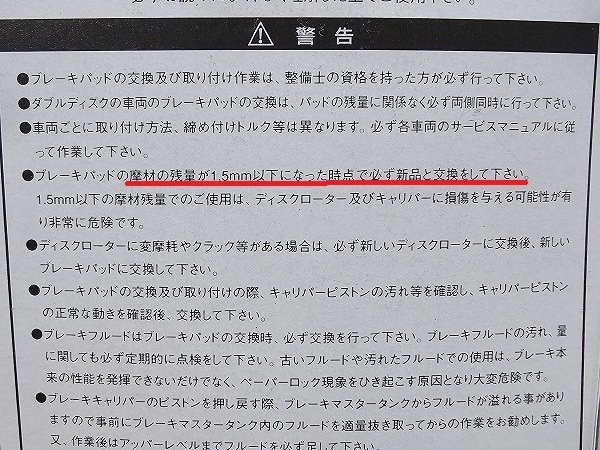 摩材は1.5mm以下になったら交換してね。とのこと。