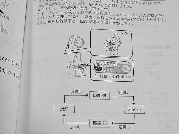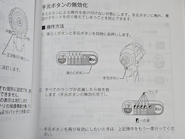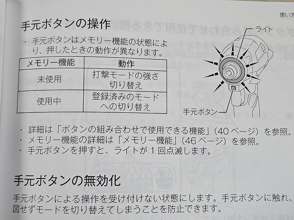 ボタンも背面なので操作しやすい。(インパクトレンチTW300Dは前面だった)