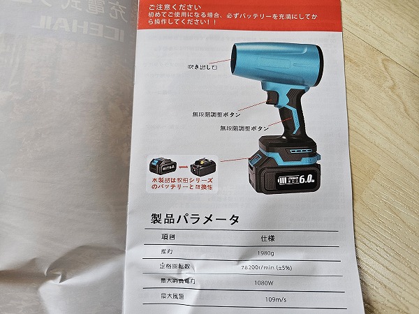 それが、このマキタ18V互換のICEHAILのブロワーは、
